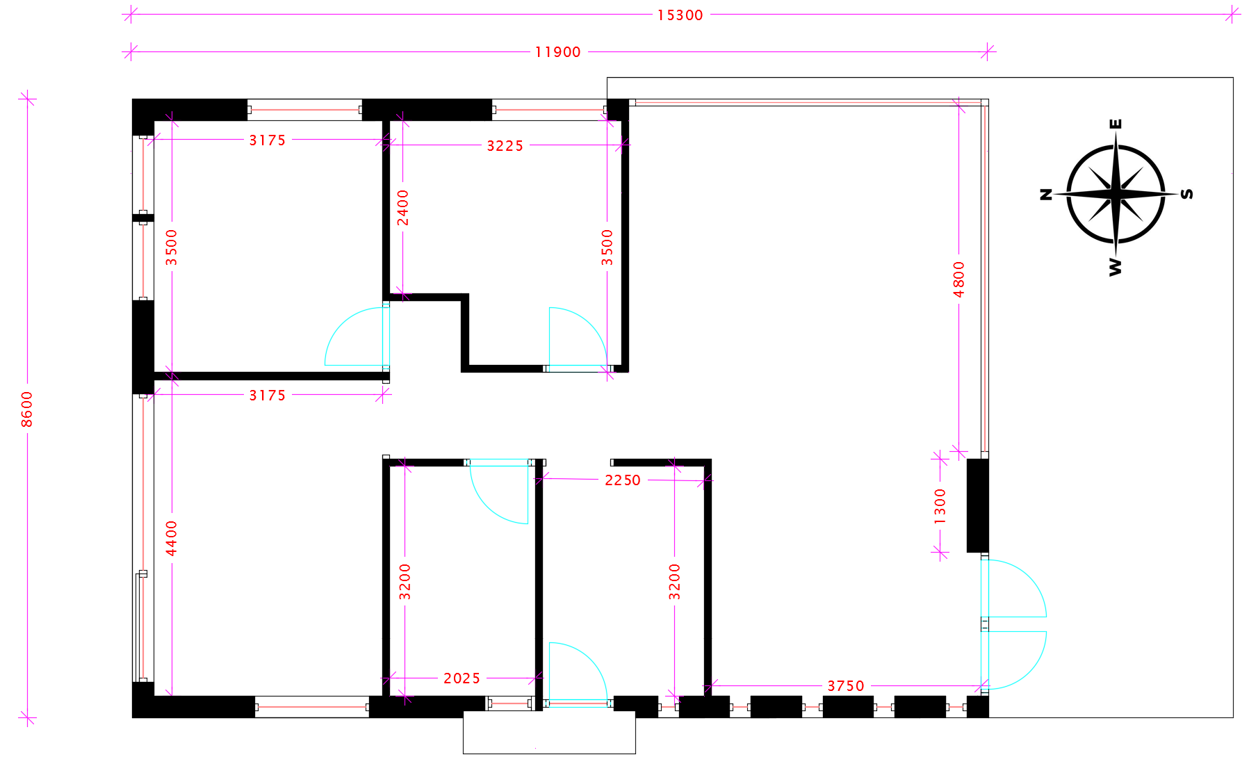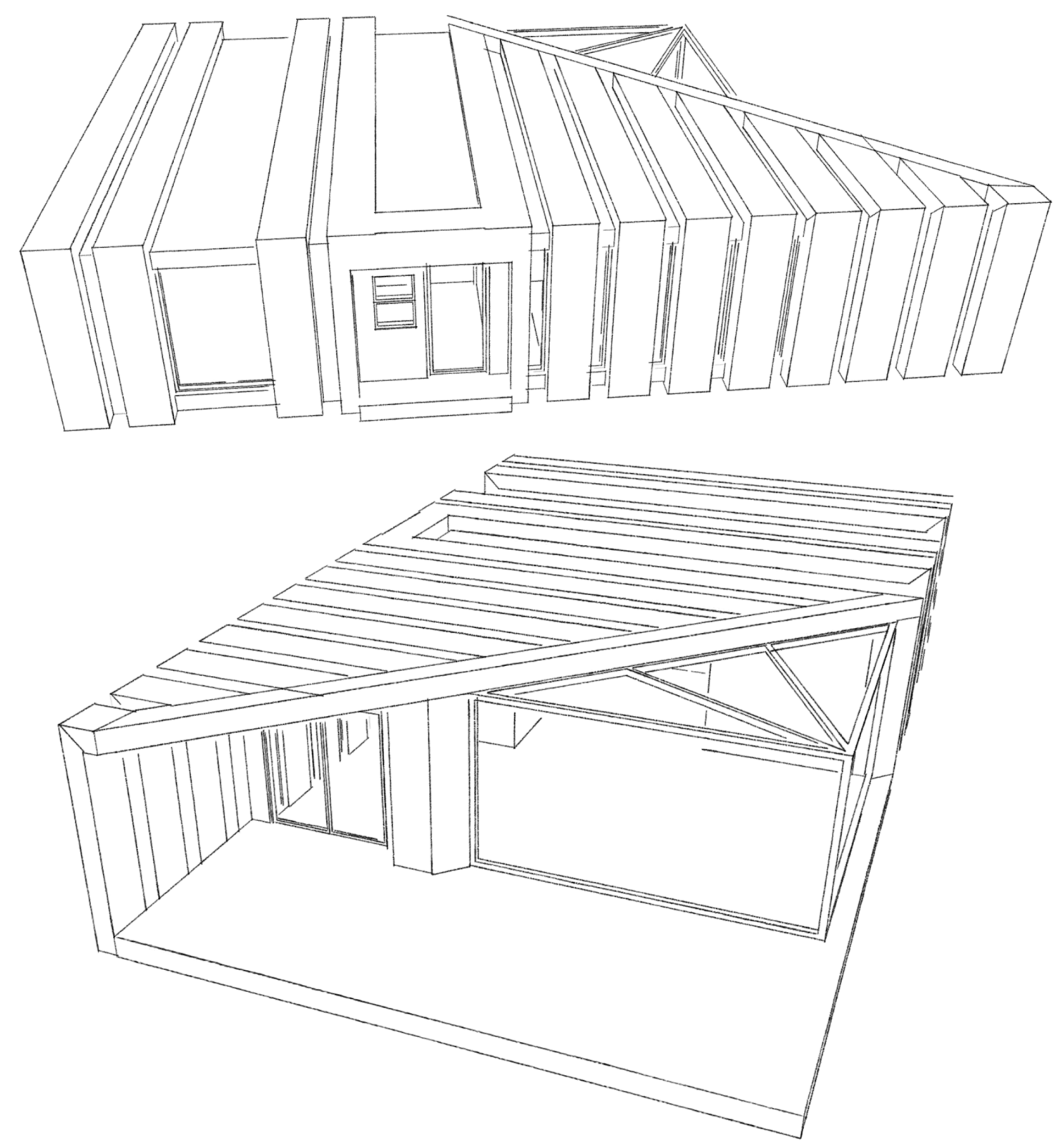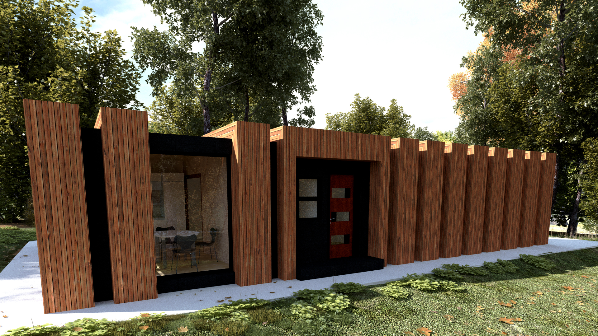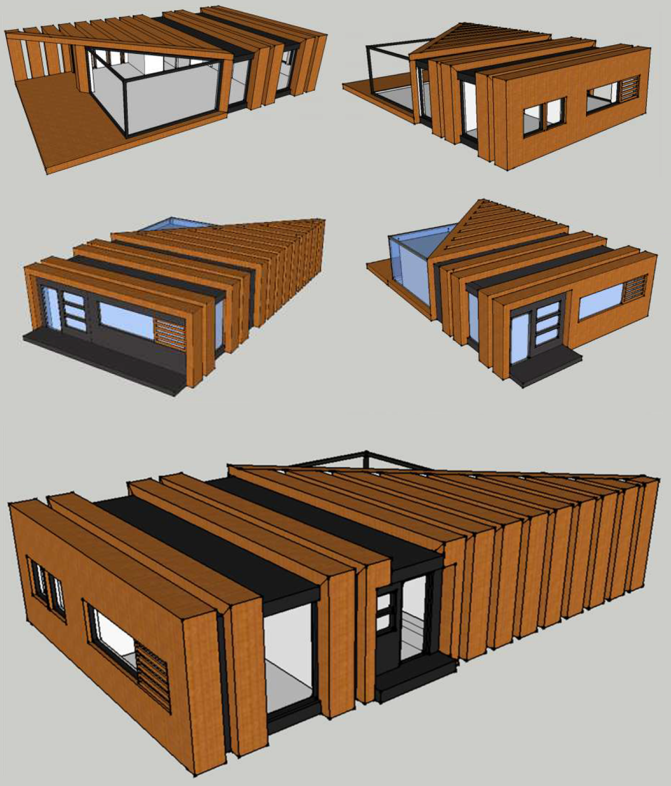 The size of the house is meant for a small family of 3-4 people with 2 bedrooms, one for the parents and one for the kids. Both rooms are facing east to get sunlight in during the morning for a natural wake up, whereas the living room has a great view to both the west and south sides to get a lot of sunlight throughout the whole day. The kitchen is also connected to the living room seamlessly without walls to utilize the natural light and enhance the overall special feeling. Lastly, the toilet and entrance were placed on the west side to optimize the amount of west and south space for the bed- and living room.
