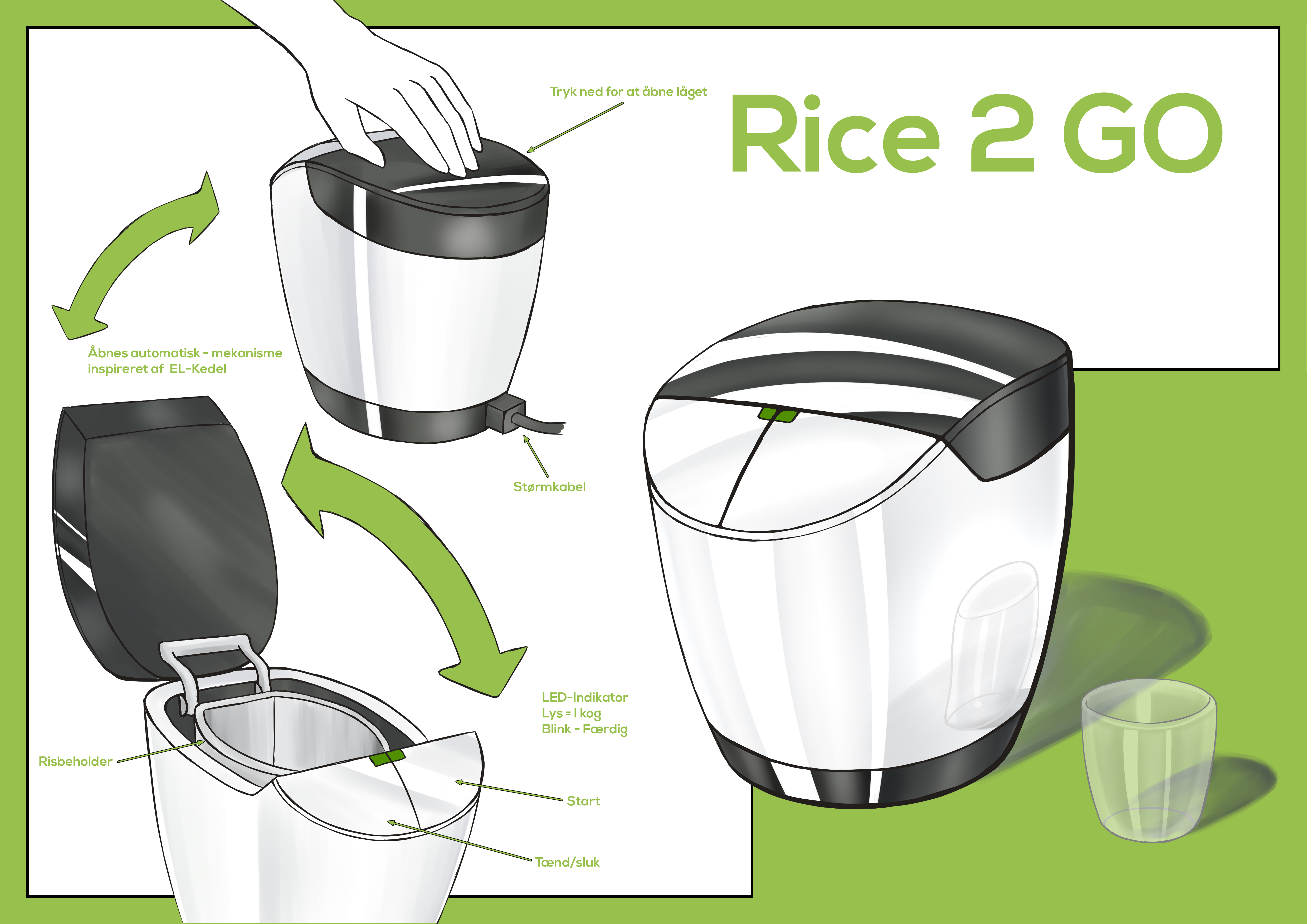 Rice2Go is a small and portable rice cooker you can take anywhere. It is very simple to use, focusing on nailing the fundamentals, while also having a sleek and modern design.